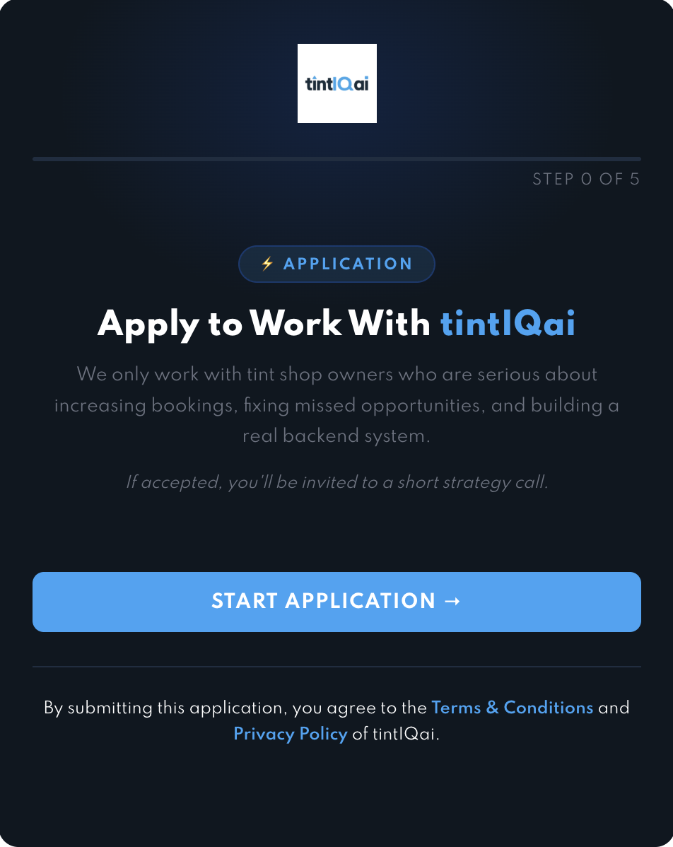 tintIQai handles all the lead capture, follow-up, booking, and review requests in the background. It's installed once and runs 24/7—keeping your shop booked while you focus on installations.